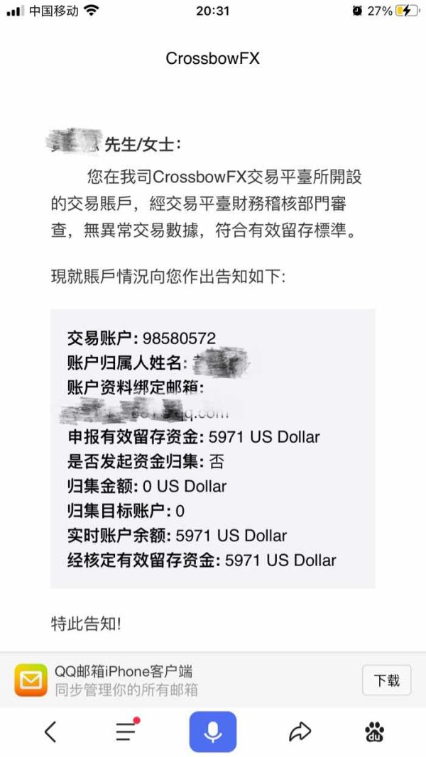 CBWFX(克罗斯贝)一直无法出金,由亚太量化研究管理有限公司代理服务交易,该公司每一个月为一期收取交易服务器代理费,但是CBWFX(克罗斯贝)平台无法出金至今,亚太量化研究管理有限公司一直推托第三通道被封,无任何解决方式,欺骗客户!