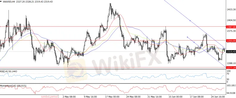 Abstract:XAU/USD is expected to decrease as U.S. Continuing Jobless Claims hit their highest since late 2021, with 1.84 million people still receiving benefits. Despite a drop in new claims to 233k, focus shifts to core PCE data, predicted to fall to 2.6%. The RSI indicates strong selling pressure. Gold's support is at $2300, with potential drops to $2277. A rise to $2350 targets resistance at $2387 and $2400.