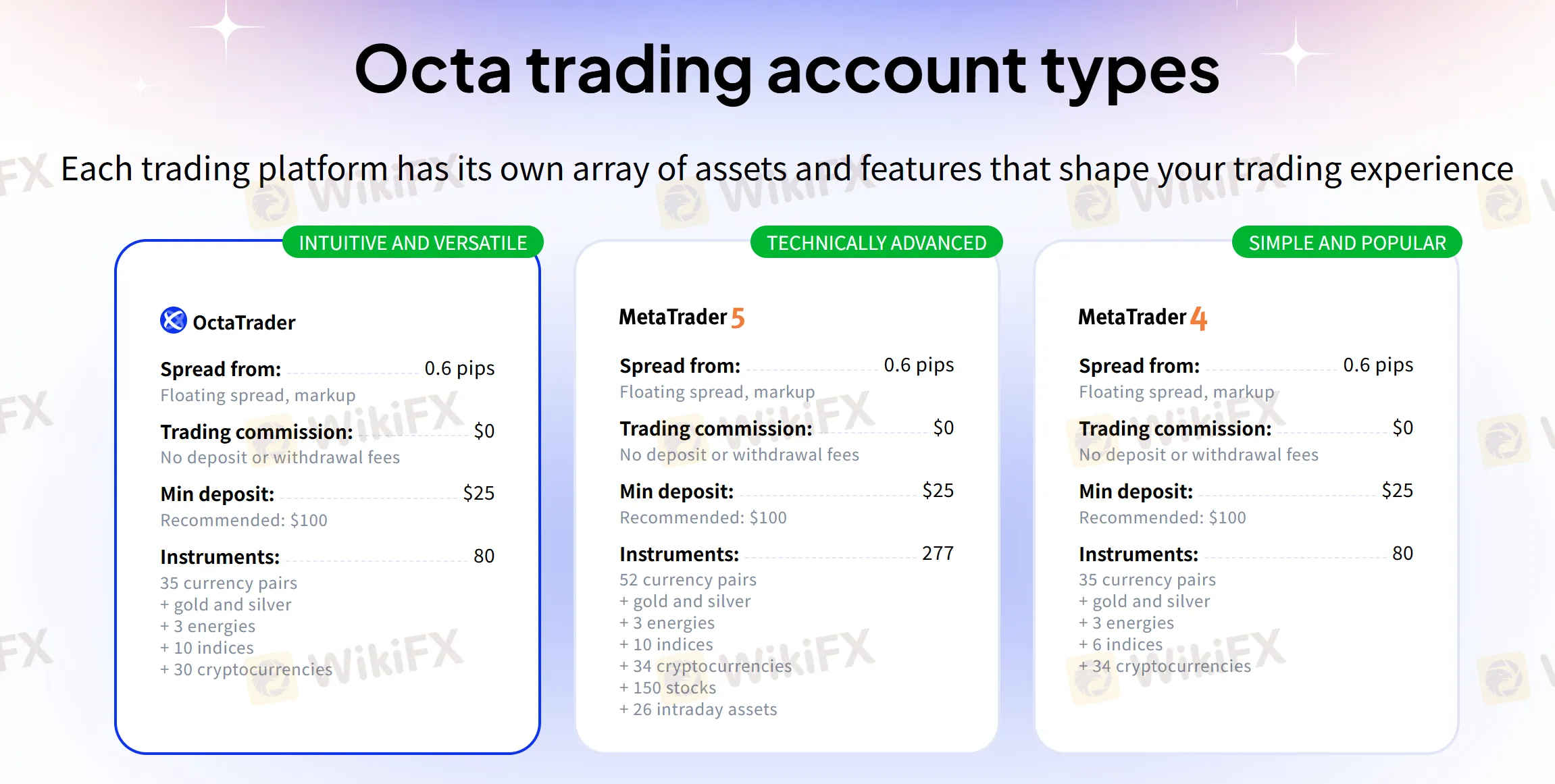 Just $25 is enough to open any live trading account on MT4, MT5, or OctaTrader.