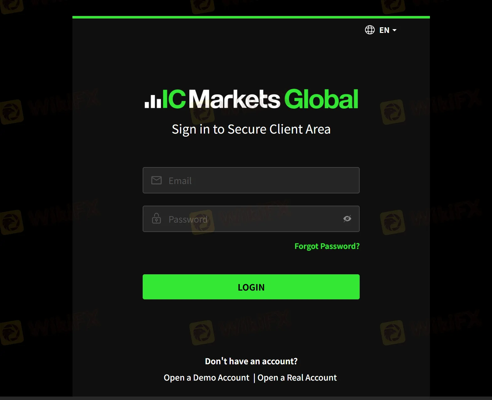 IC Markets provides a unified and secure login portal for managing your trading profiles. Once registered, traders access the Secure Client Area, where they can manage funds, open live or demo accounts, and download trading platforms. Login is performed via email and password, with optional 2FA (two-factor authentication) for added protection.