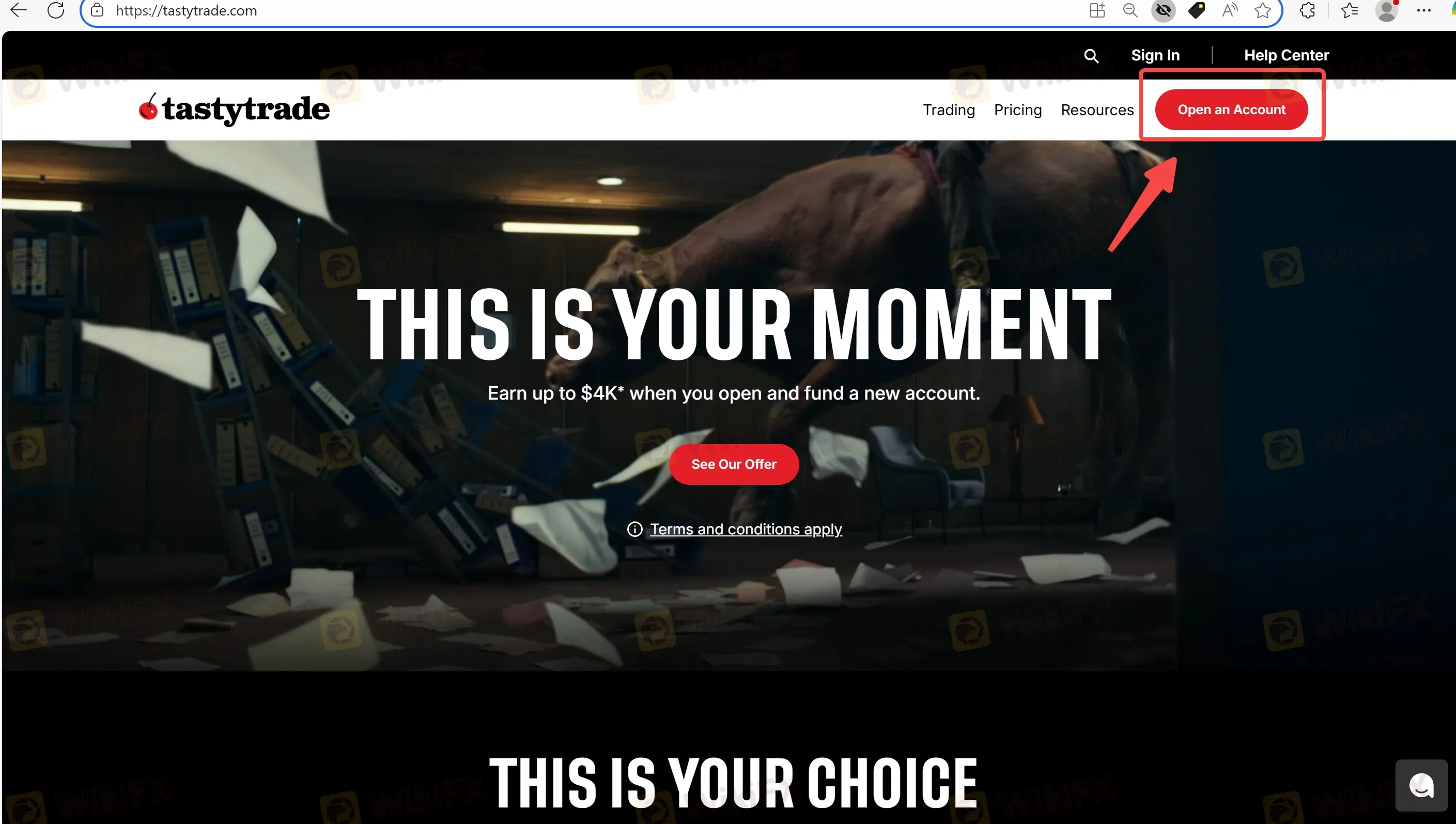 Go to tastytrade.com and click “Open an Account” in the top right corner.