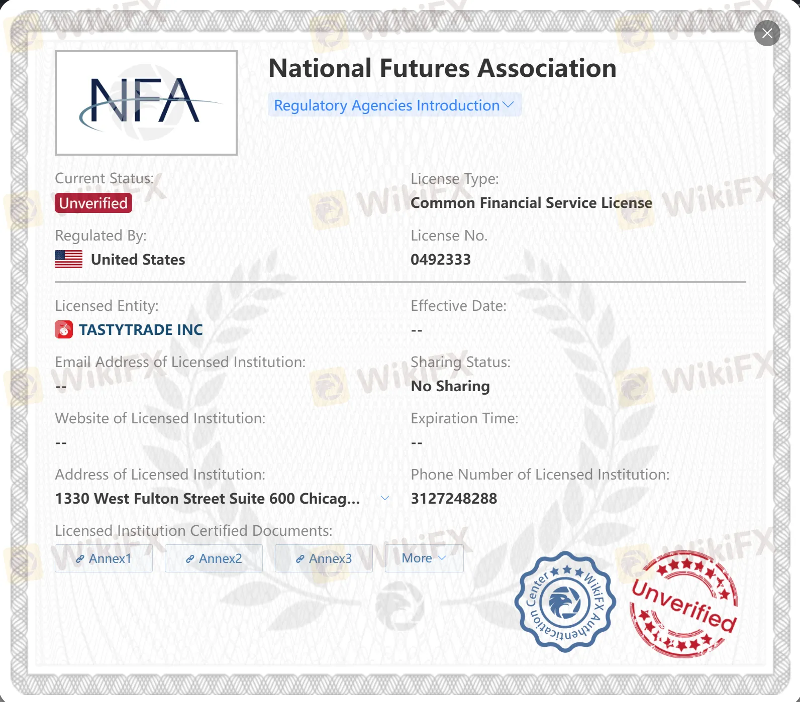 | National Futures Association (NFA) | United States | TASTYTRADE INC | National | Common Financial Service License | 492333 |