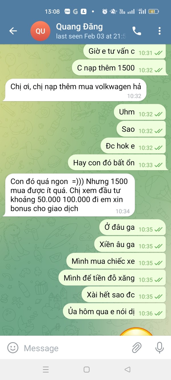 phát sinh gian lận lệnh buy 100 lót tự động nhảy vào tài khoản của mình làm bay mất 3000usd khi mình nói với kỹ thuật mình rút khỏi thị trường, cứ kêu bơm thêm tiền, tiền mình đi vay mình làm công ăn lương mỗi tháng có 10tr, xong rút tiền hok đc