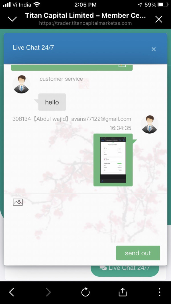 मेरे 2800 डॉलर की निकासी अब तक 8 महीने से जटिल हो गई है, मैंने कर और अन्य शुल्क भी दे दिए हैं, लेकिन निकासी नहीं हो रही है। मैंने अपने सभी पैसे इस प्लेटफ़ॉर्म में लगा दिए हैं, लेकिन कुछ भी वापस नहीं मिल रहा है। निकासी के समय, उन्होंने मुझसे कर देने को कहा, मैंने 566 डॉलर कर दिए हैं। मेरे पास सबूत है, मुझे पैसे वापस चाहिए। मैंने लाभ के लिए निकासी की थी, लेकिन उन्होंने मेरे पैसे सब ले लिए, कहा कि मैंने एक दिन में कई बार ट्रेड किया है, इसलिए खाता बंद हो गया है, यह बिल्कुल बेतुका है। कुछ समय बाद, उन्होंने मेरा खाता टाइटन से यूनिवर्सल ट्रेडिंग लिमिटेड में ट्रांसफर कर दिया। उन्होंने सब कुछ बदल दिया है, और मेरे पैसे भी ले लिए हैं। कृपया मेरी निकासी में मेरी मदद करें।