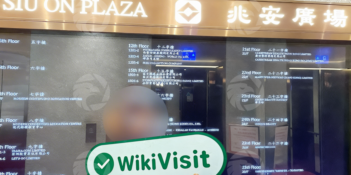 जांचकर्ताओं को 15वीं मंजिल पर डीलर का कार्यालय मिला। कांच के दरवाजे और दीवार दोनों पर व्यापारी का लोगो लगा हुआ है। महामारी के कारण, सर्वेक्षण कर्मी कंपनी में प्रवेश करने में सक्षम नहीं थे, और केवल कुछ समय के लिए फ्रंट डेस्क पर कुछ तस्वीरें लीं। फिर भी, यह पुष्टि की जाती है कि डीलर का वहां एक कार्यालय है।