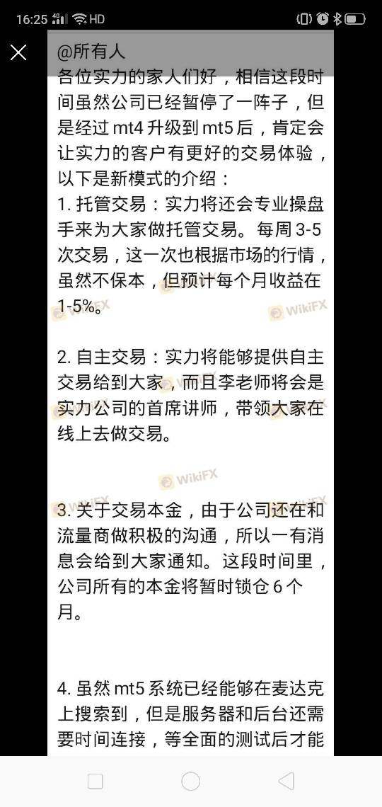 实力外汇纯属诈骗,19年底出不了本金。实力外汇亚太区总负责人 《林正德 》三合系统实力外汇创始人《李伟》,《韩中原》是总经纪人。