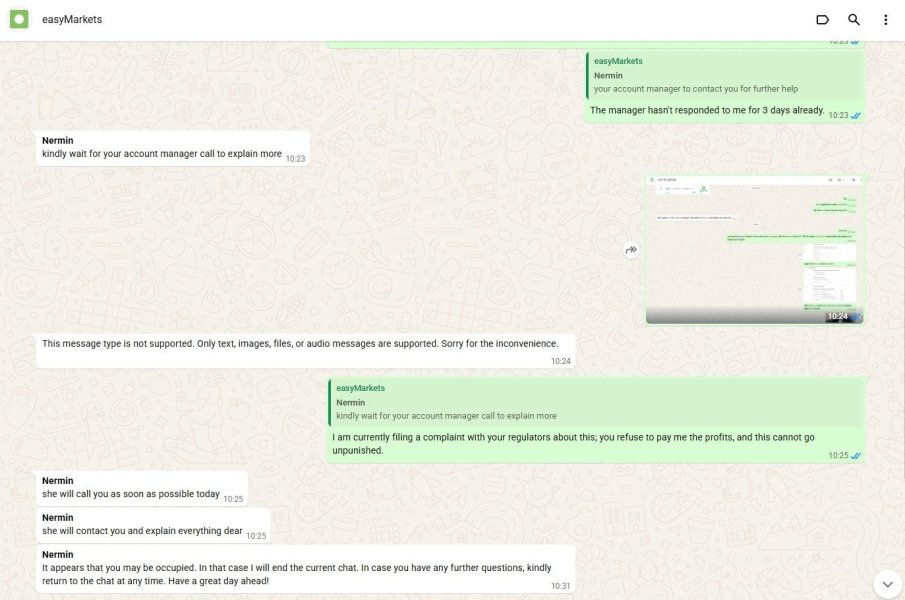 Stay away from this broker. I made a good profit $8.158, but when I requested a withdrawal, they canceled it without telling me why. I've been trying to contact the local manager for a week, but she's no longer responding. The chat support only gives the same answer: to wait for the local manager to reply. My account has reverted to "unverified" status, preventing me from even requesting a withdrawal. This broker is a scam. Don't trust them.