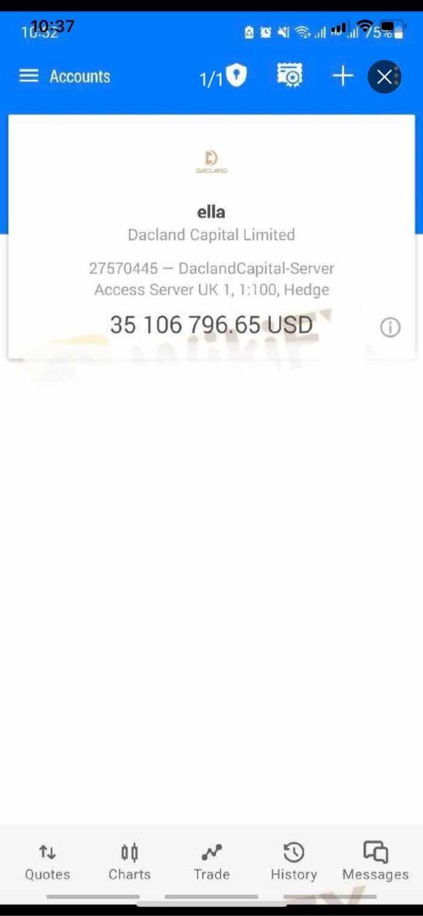 그들은 당신이 거래를 할 수 있도록 하지만 거래를 추천하고 당신과 거래할 때 처음에 이익을 보여줄 것입니다. 계정에 수익이 발생하면 mopre를 입금하지 않으면 계정에 액세스할 수 없습니다. 이것은 무한 루프입니다. 그러나 assetClaimback/com에서 계정을 승인하고 내 돈을 반환했습니다. Dacland는 자금을 확보하기 위해 막대한 보증금이 필요합니다.