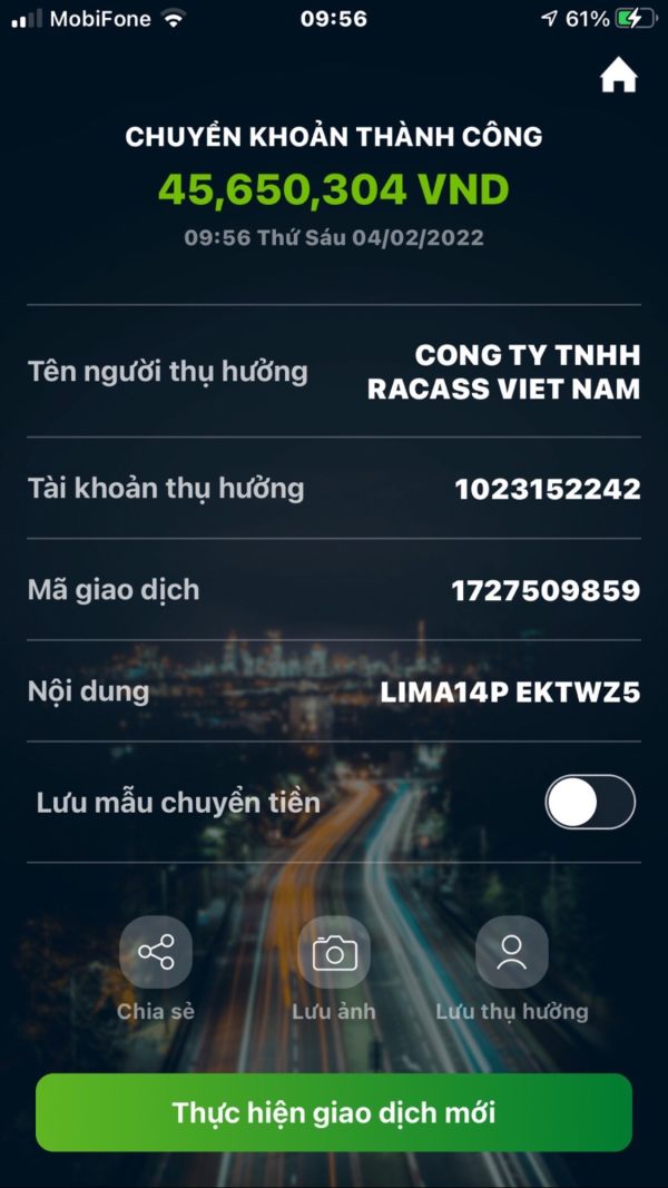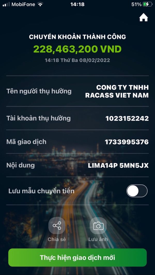 Tôi là người chưa biết gì về đầu tư, được môi giới mở tài khoản số 879284 tại sàn ZenoMarkets và nộp tiền thông qua tài khoản số 1023152242 của Cty TNHH Racass Việt Nam, người hướng dẫn kỹ thuật là cô Huyền Anh (0946108681). Cô Huyền Anh đã hướng dẫn tôi từ chọn mã đặt lệnh và khối lượng, đến nay tôi bị mất toàn bộ số tiền đầu tư là 47,100$. Ngoài ra cô Huyền Anh còn hướng dẫn tôi rút tiền 3 lần tổng cộng 157$ nhưng tiền không về tài