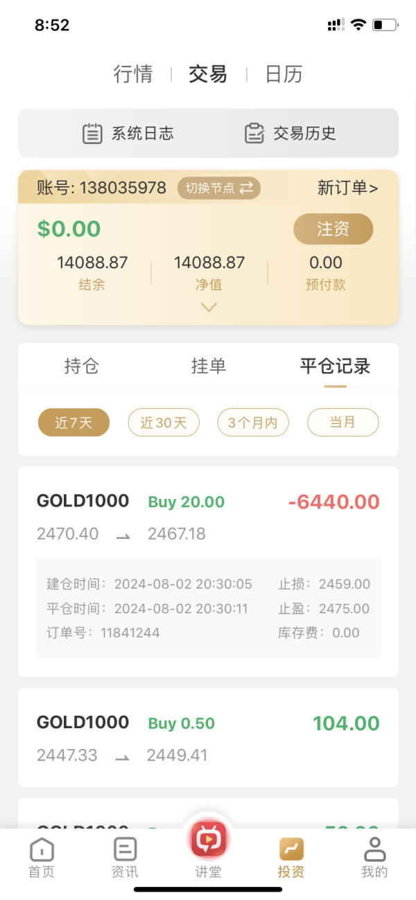 不想多说了,难得描述!非农挂单,居然滑出10个点 太黑了 挂的2461进的多单,止损2459。给我滑到2470.4