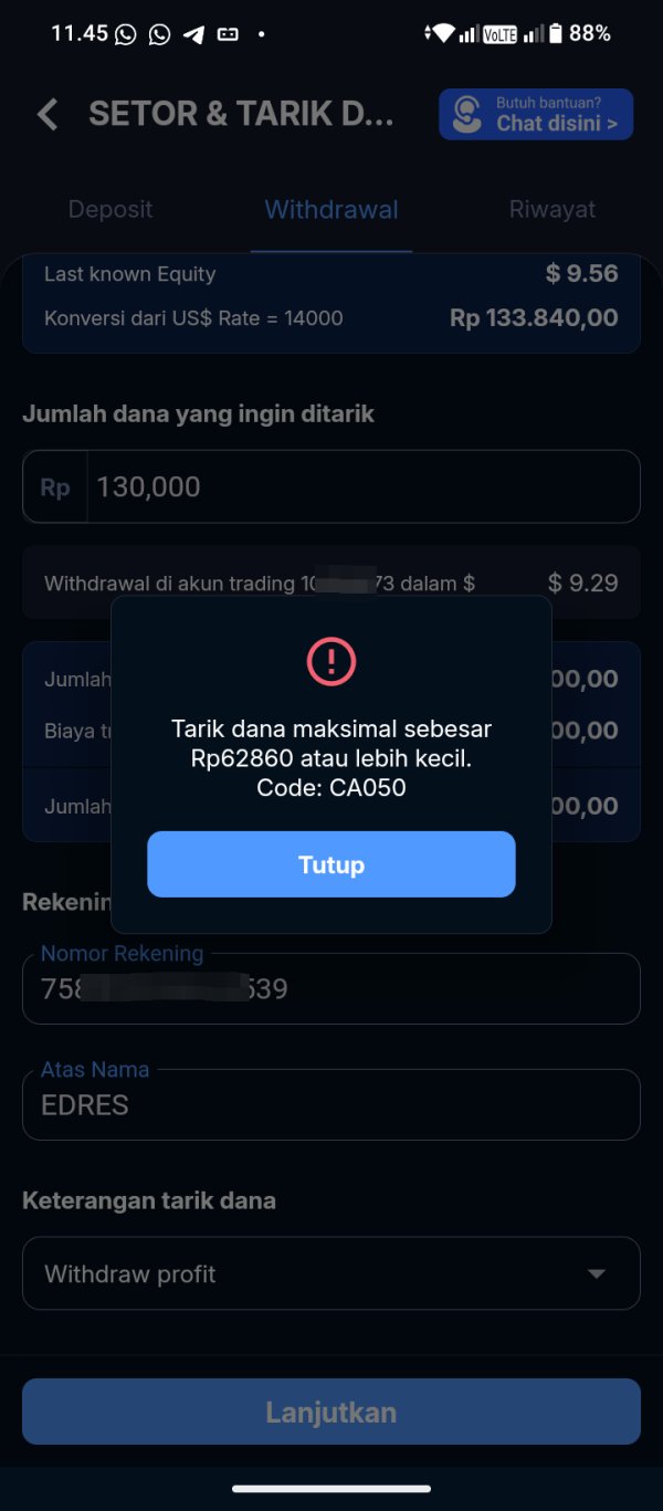 pada tanggal 4 Maret saya menarik dana di quid pro tidak bisa padahal tertera minimal 70k tapi saldo saya melebihi itu tapi saya tarik tidak bisa