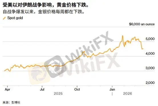 ATFX:由于中东战争进入第四周,美国和伊朗互相威胁要发动新的袭击,周一亚市时段,黄金价格大幅下跌,几乎抹去了今年以来的所有涨幅。金价一度跌5%,抹去了今年以来的全部涨幅。这则看似反常的市场表现,实则揭示了当前宏观环境下黄金定价逻辑的一次深刻重构。