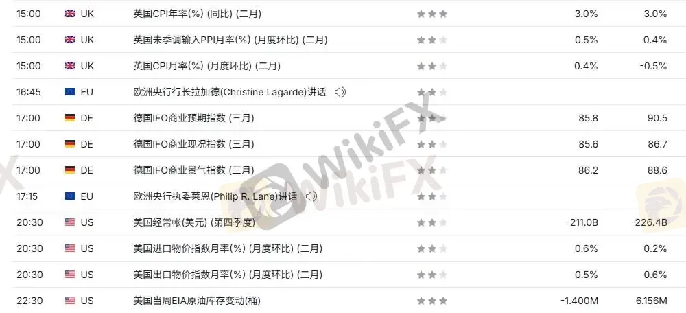 基本面: 标普全球周二公布的数据,欧元区3月综合PMI从2月的51.9降至50.5,低于分析师预期的51,创下去年5月以来最低水平,但仍勉强守住50这一荣枯分界线。中东战争推高能源成本、压制服务业,欧洲央行面临增长与通胀的两难困境。欧元区私营部门活动在3月急踩刹车,综合PMI降至10个月低点,滞胀风险警报拉响。