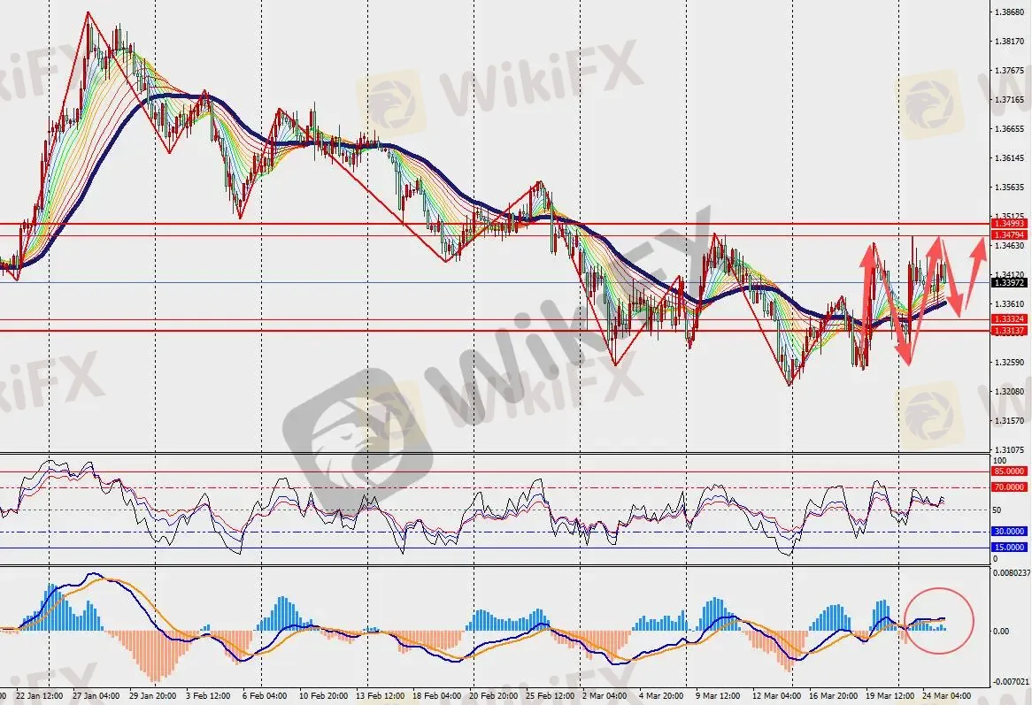 第一阻力位:1.3450 第一支撑位:1.3340