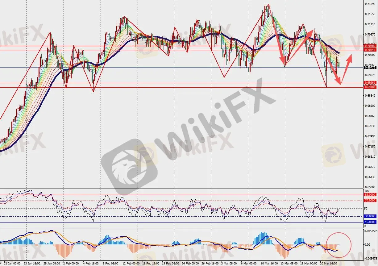 第一阻力位:0.7020 第一支撑位:0.6930