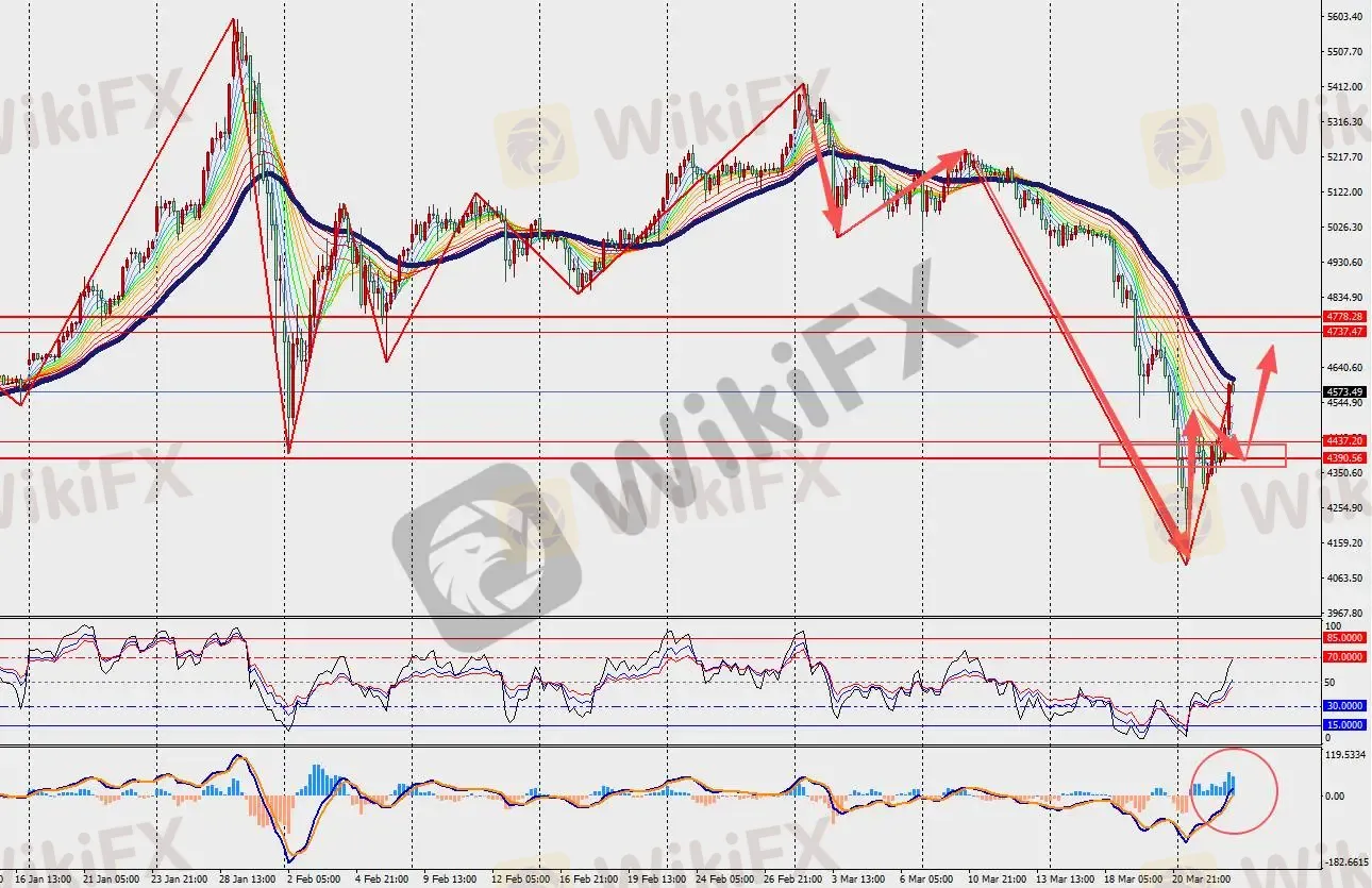 第一阻力位:4590.00 第一支撑位:4555.00