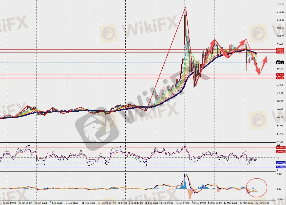 第一阻力位:100.00 第一支撑位:82.00