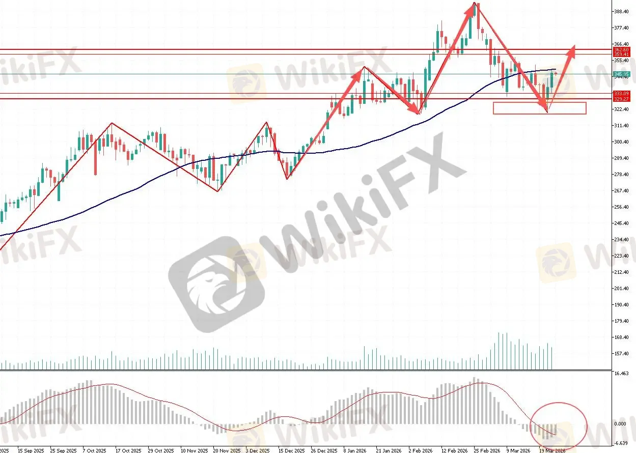 第一阻力位:362.00 第一支撑位:327.00
