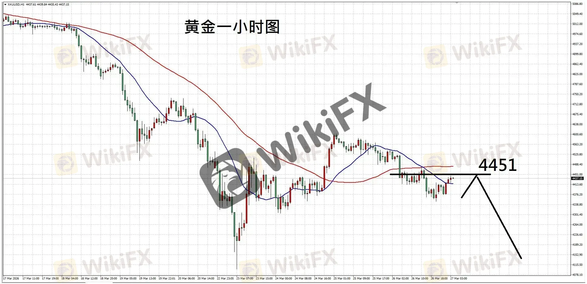摘要:【基本面分析】昨日伊朗抗议美国协议片面且不公平,伴随海峡运量仍低迷且交火不断,中东冲突一时难以落幕,同时经济数据上,失业金数据变化不大,反映美联储仍有余裕按兵不动;资金方面,目前约有110亿美元资金自涵盖贵金属与大宗商品的ETF中流出,反映市场短期仍倾向现金为王,削弱了黄金走势。【技术分析】黄金一小时图,走势跌破前期支撑后持续回落,均线下弯显示卖压较强;如后续反弹未突破前期阻力,走势或继续向下修正