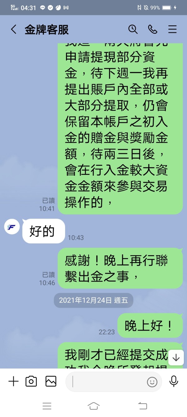 Fancy金牌客服再提出要出金申請後即失聯十多天,不予回應出金申請提交成功後續進度問題.