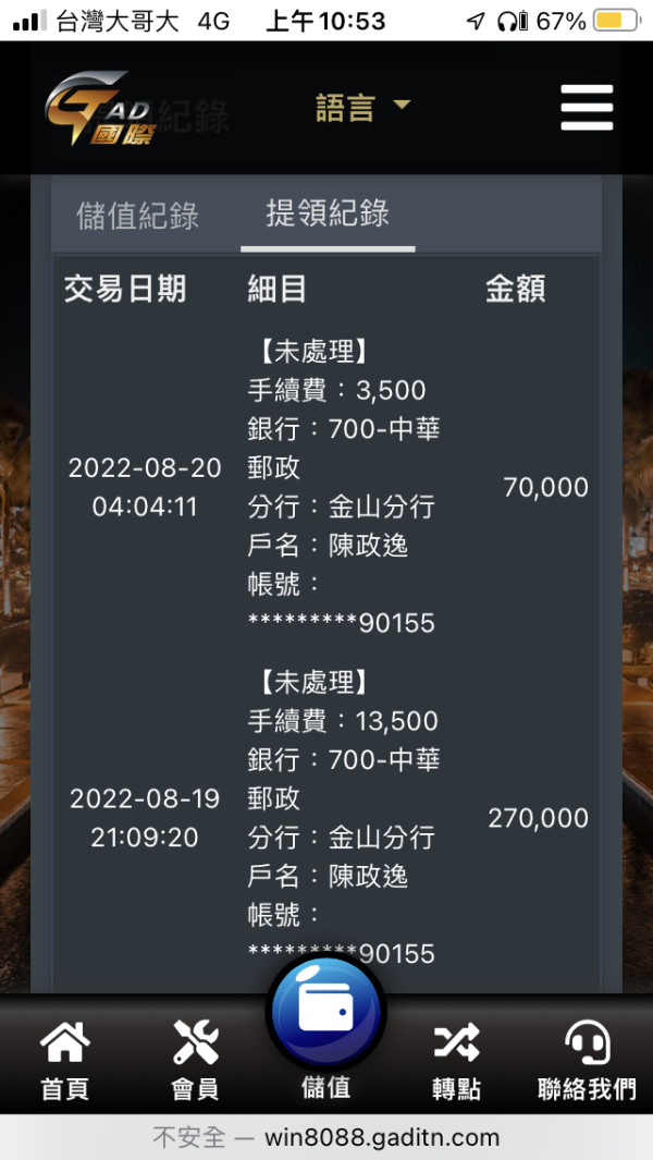 儲值過程,快速!要提領,一開始客服跟我說,下注金額,必須達到 儲值金額的十倍!才可以提領!還是不讓領