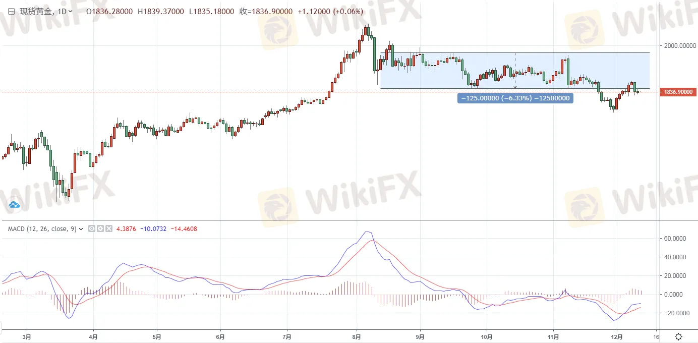 黃金方面,週五(12月11日)亞市早盤現貨黃金維持窄幅震盪,微幅走高,由於新冠疫苗接種方面取得更多進展引發了市場的樂觀情緒,增強了人們對經濟復蘇的信心,疊加未能站穩1850關口,引發市場大量拋盤,持續承壓回落,目前暫位於1836.9美元/盎司附近整理交投。