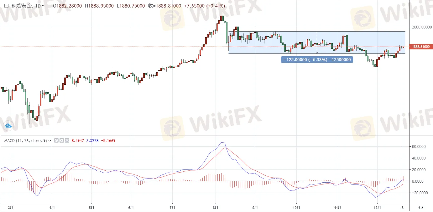 摘要:黃金方面,週一(12月21日)亞市早盤現貨黃金在週五短暫回落後再度上行,上逼1890關口。由於英國政府週末宣佈,首都倫敦等部分地區的新冠疫情防控級別將提升至新增加的第四級為期兩周,避險情緒回暖,上逼1890關口。