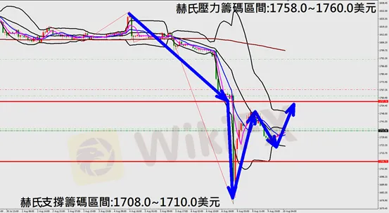 今日黃金(8月10日)早盤在1729.5美元/盎司附近,從技術分析面切入1小時級別觀察走勢架構符合昨日(9日)預測K棒盤中出現觸底反彈上漲行情,目前K棒有望站穩布林通道後,出現一波上漲行情,因此今日建議佈局多單為主。